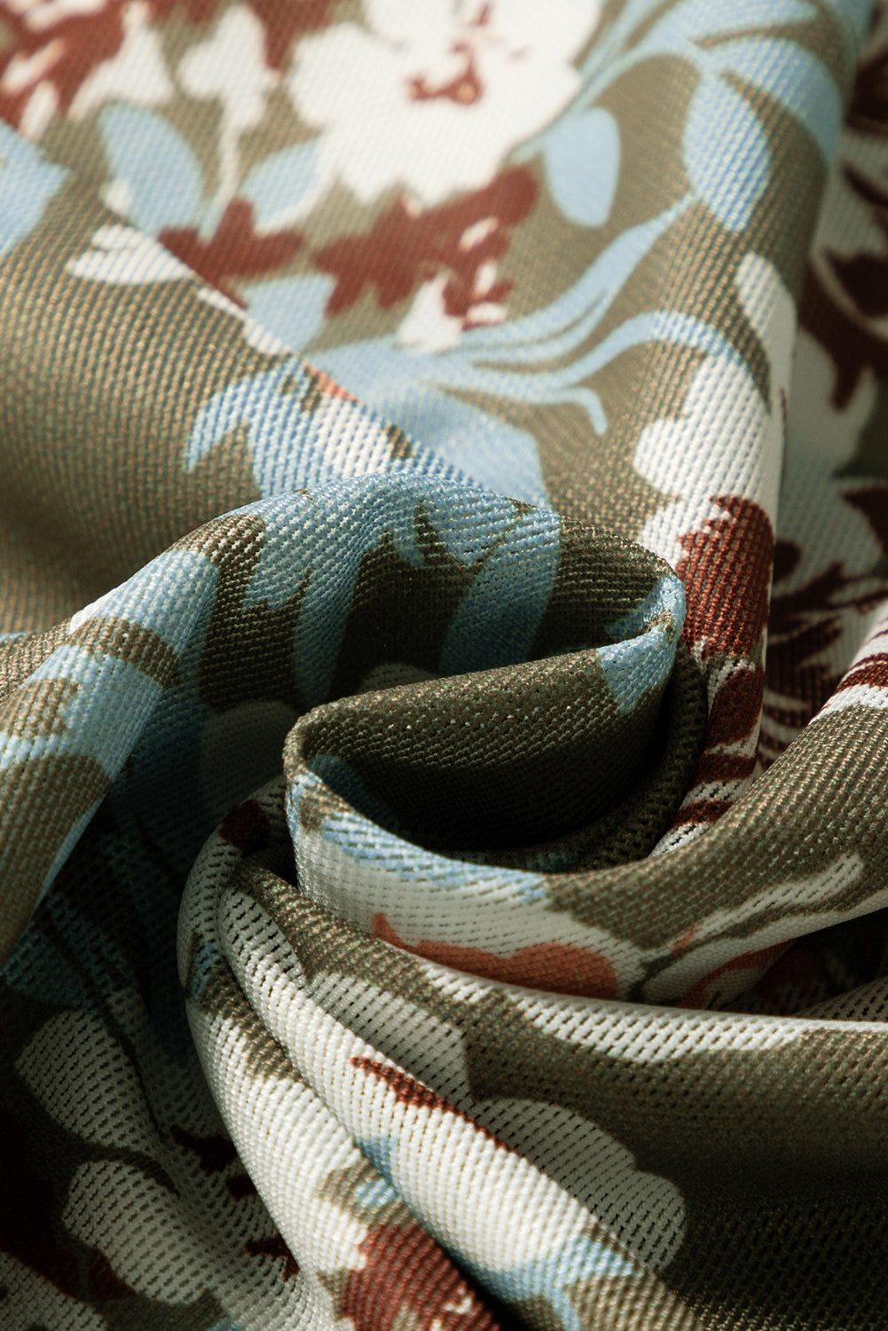 Green Floral Print Mesh Fitted Long Sleeve Top