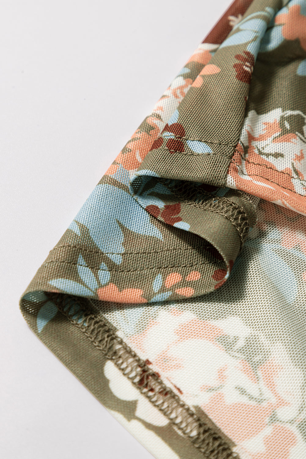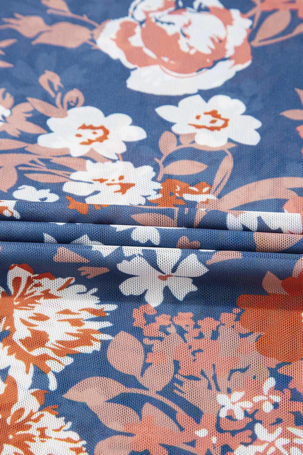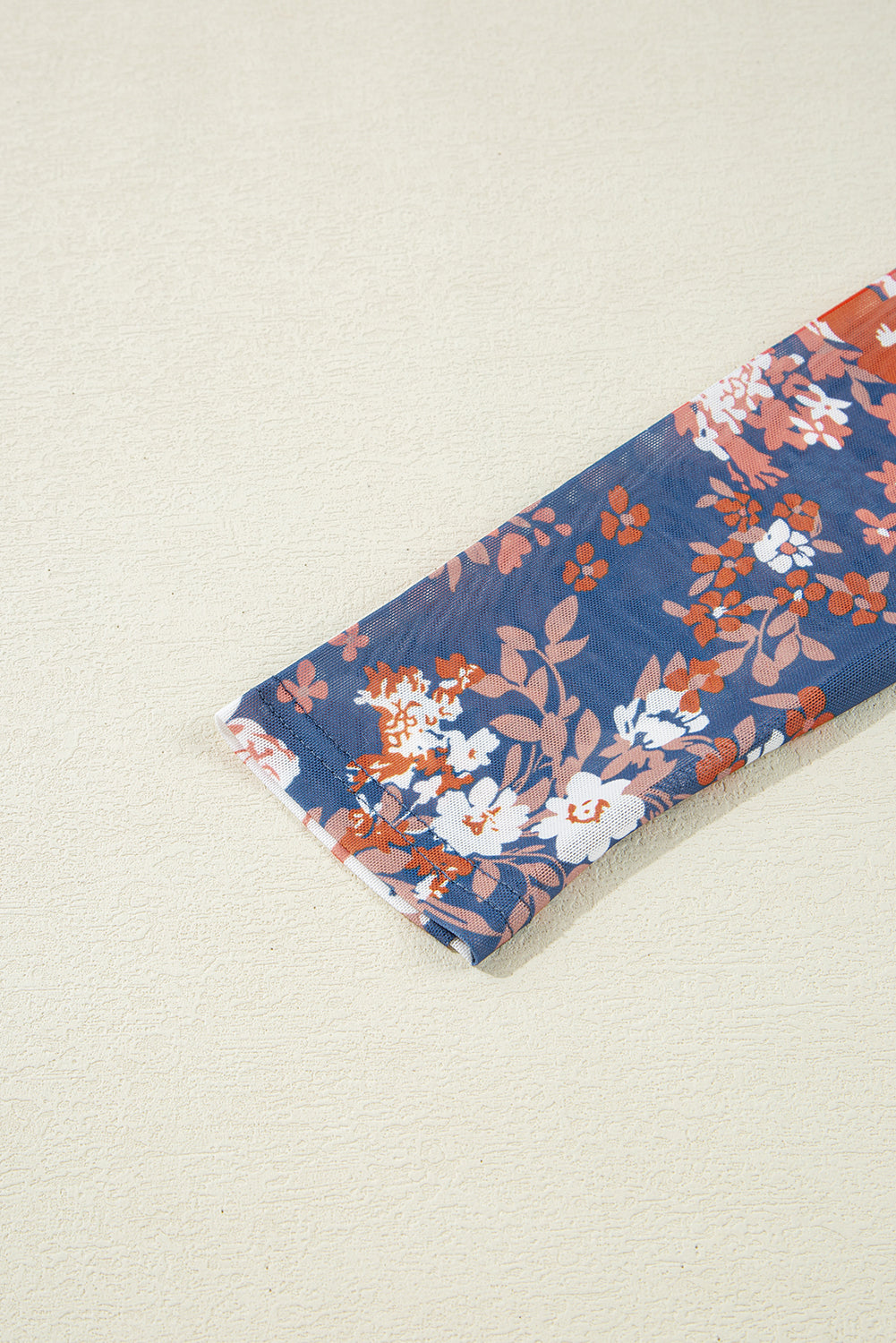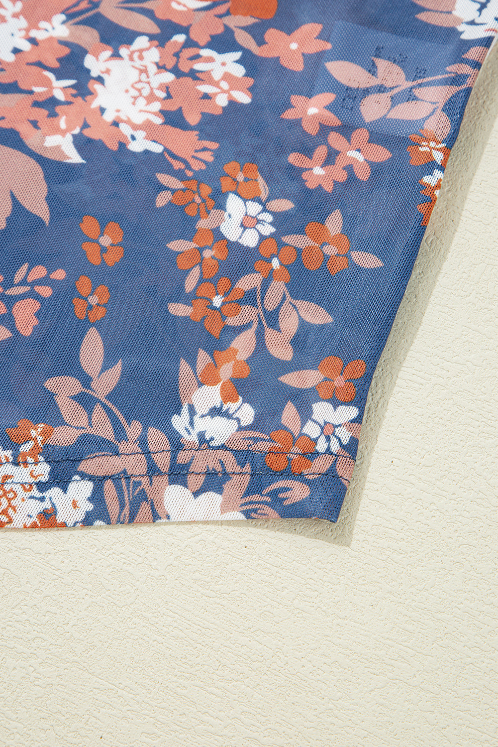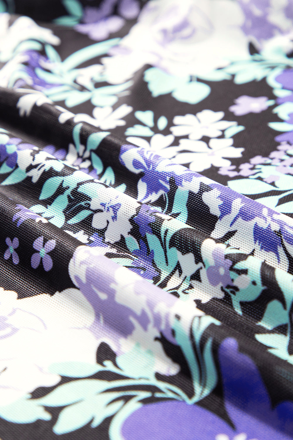 - Elegant floral print pattern shows this mesh top a feminine touch.